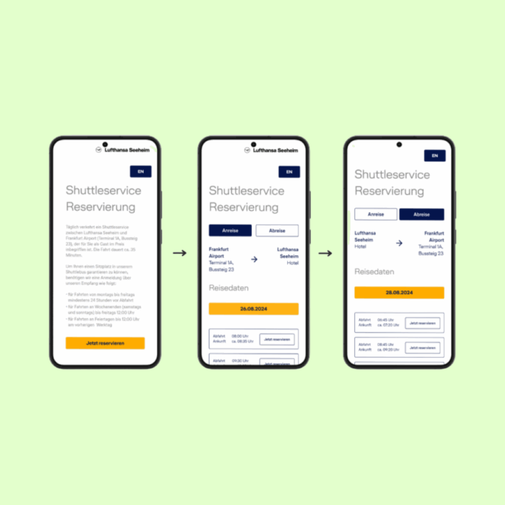 Digitale Shuttle-Reservierung leicht gemacht: Eine benutzerfreundliche Web-App für Gäste des Lufthansa Seeheim Conference Hotels.